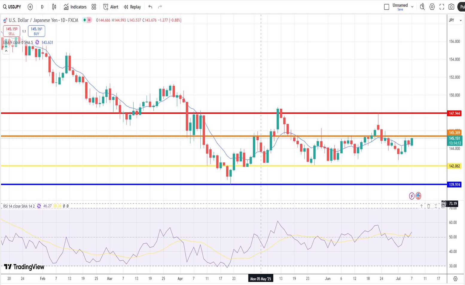 Η ισοτιμία αμερικανικού δολαρίου και γεν σήμερα, την τρέχουσα χρονική στιγμή [07/07/2025] είναι στα επίπεδα των 145.151 μονάδων.
