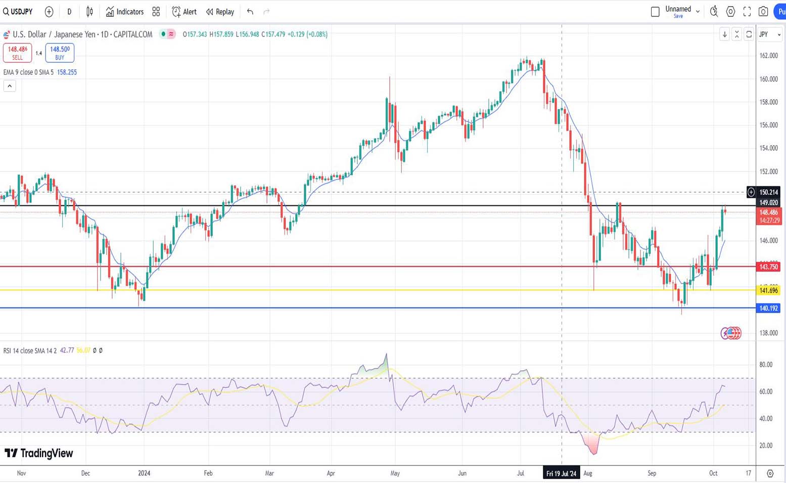 - Ανάλυση USD-JPY [Αμερικανικού δολαρίου έναντι Ιαπωνικού Γεν] για σήμερα 07/10/2024: