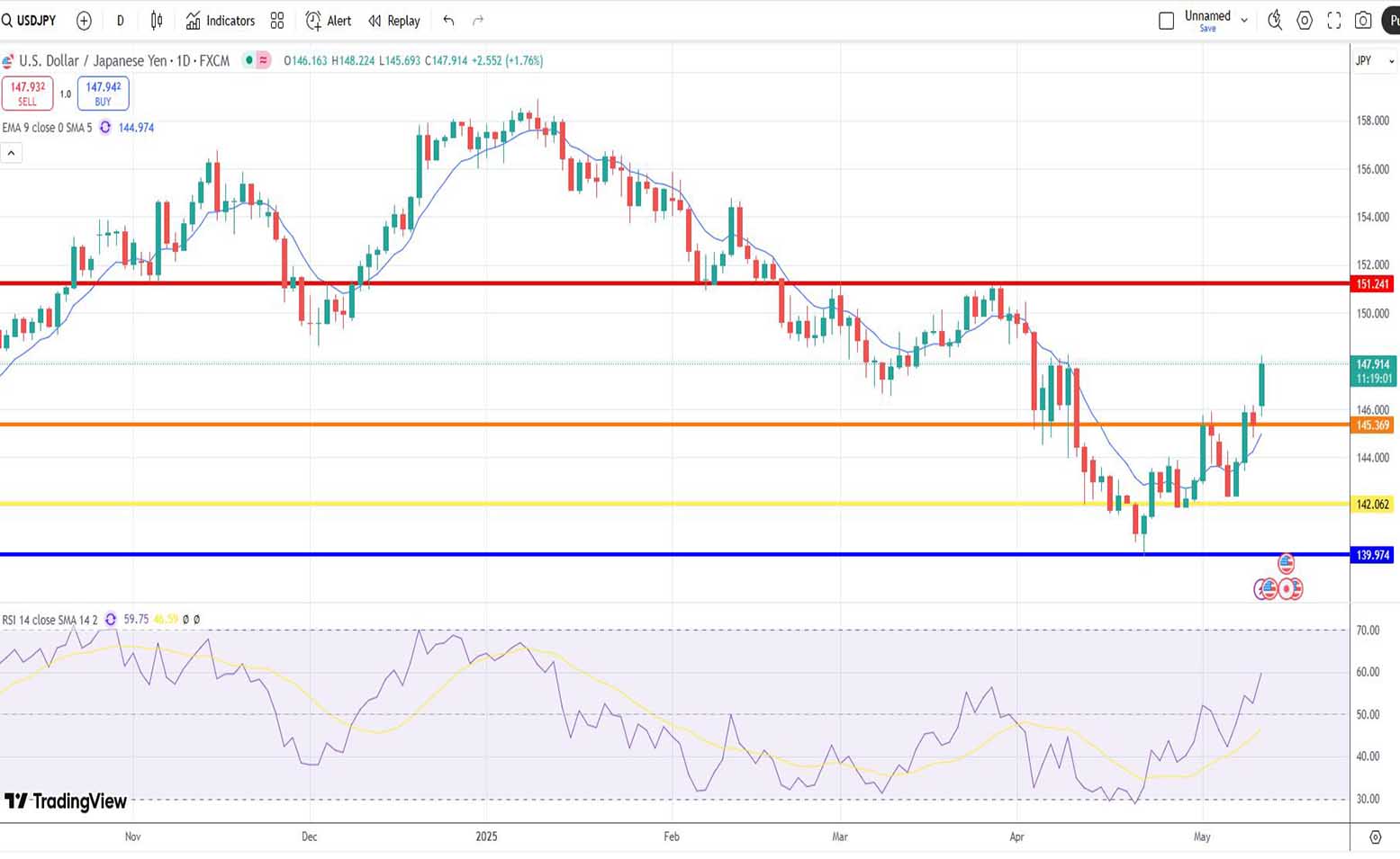 Την περασμένη εβδομάδα, με ημερομηνία αναφοράς την 5η Μαΐου 2025, βασιστήκαμε στην τεχνική ανάλυση της ισοτιμίας USD/JPY, με στόχο την πρόβλεψη της μεσοβραχυπρόθεσμης πορείας της. Είχαμε τότε εκτιμήσει τα εξής: