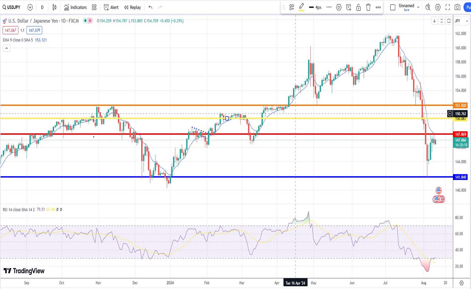 - Ανάλυση USD-JPY [Αμερικανικού δολαρίου έναντι Ιαπωνικού Γεν] για σήμερα 12/08/2024: