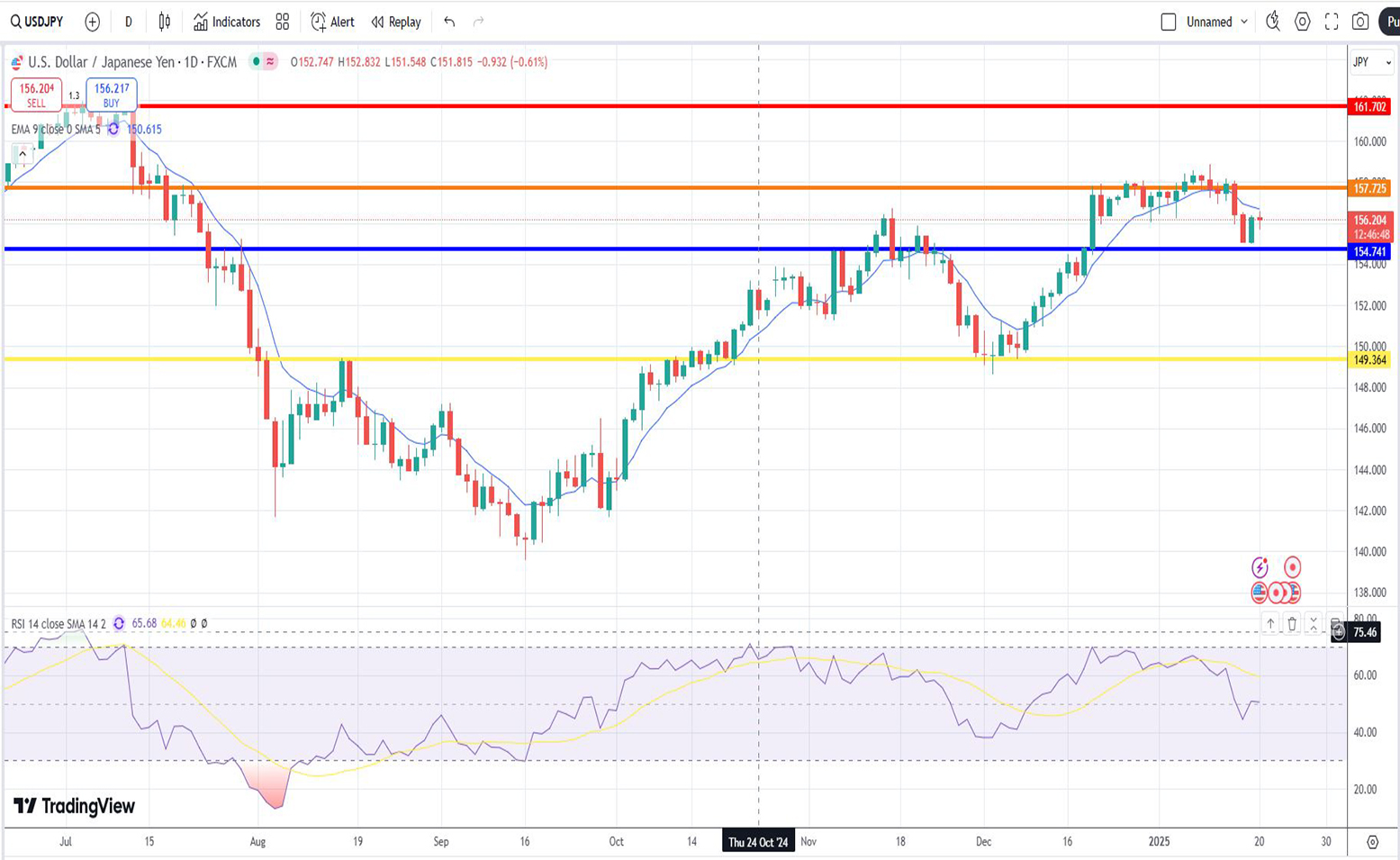 Η ισοτιμία αμερικανικού δολαρίου και γεν σήμερα, την τρέχουσα χρονική στιγμή [20/01/2025] είναι στα επίπεδα των 156,204μονάδων.