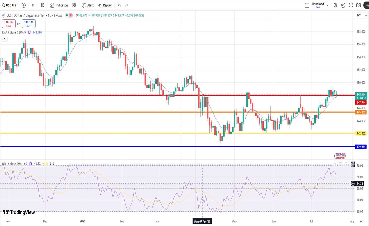 Κατά την προηγούμενη ανάλυσή μας, με ημερομηνία 17 Ιουλίου 2025, είχαμε εντοπίσει κρίσιμα τεχνικά σημεία που επηρέαζαν την πορεία της ισοτιμίας δολαρίου/γιεν, επισημαίνοντας τα εξής:
