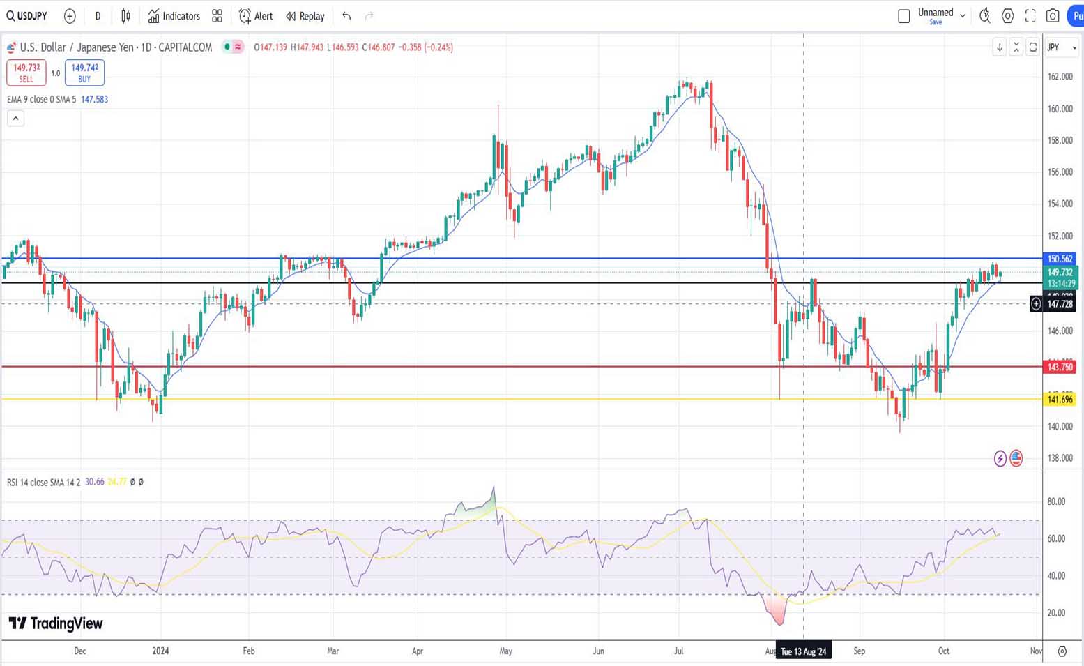 Στην τεχνική μας ανάλυση για την πορεία και πρόβλεψη της ισοτιμίας δολαρίου έναντι του ιαπωνικού γεν, την περασμένη εβδομάδα με ημερομηνία αναφοράς 14 Οκτωβρίου 2024, είχαμε γράψει τα εξής: