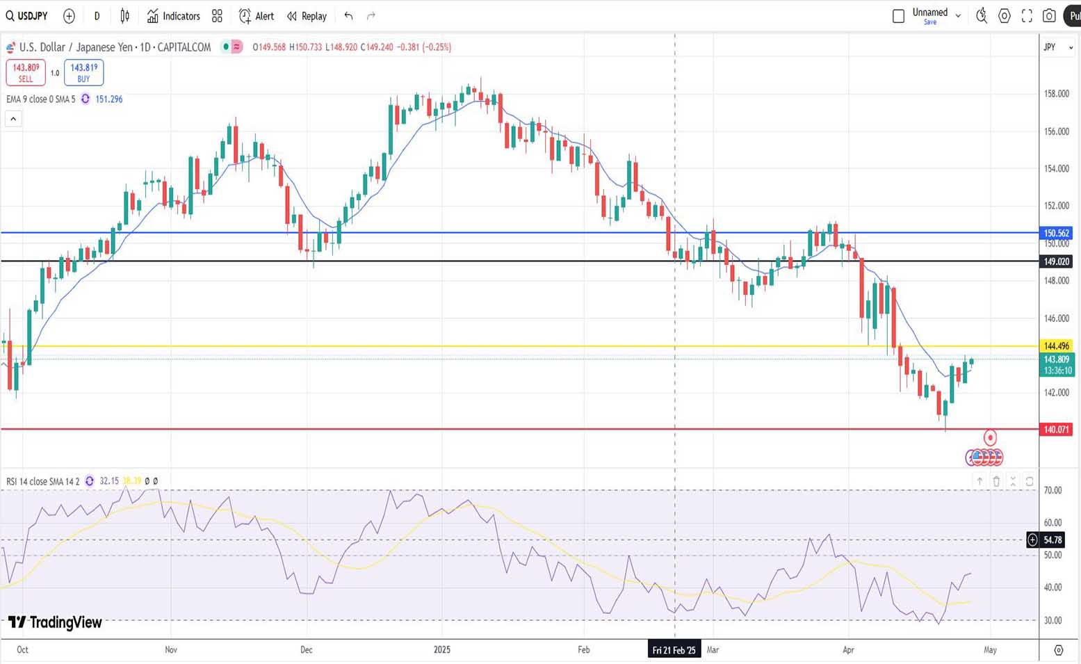 Στην προσπάθειά μας να προβλέψουμε την πορεία της ισοτιμίας του δολαρίου έναντι του ιαπωνικού γεν, βασιζόμενοι στην τεχνική ανάλυση της 24ης Απριλίου 2025, γράψαμε ορθά τα εξής: