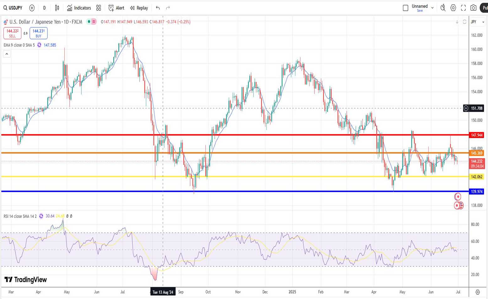 • Ανάλυση USD-JPY [Αμερικανικού δολαρίου έναντι Ιαπωνικού Γεν] για σήμερα 30/06/2025