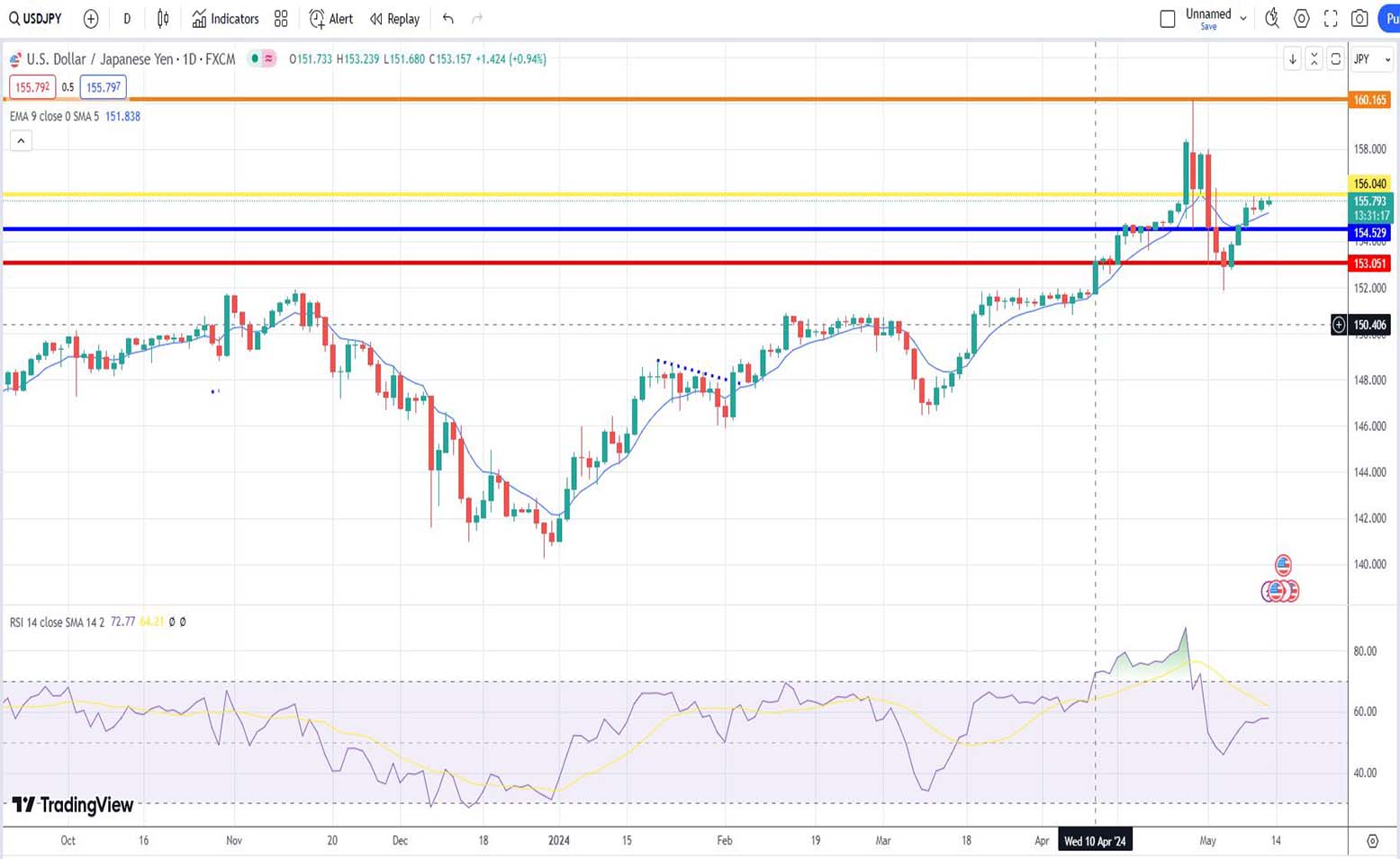 - Ανάλυση USD-JPY [Αμερικανικού δολαρίου έναντι Ιαπωνικού Γεν] για σήμερα 13/05/2024: