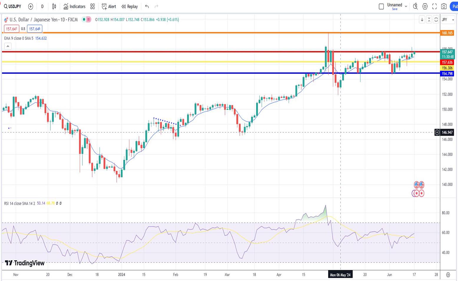 - Ανάλυση USD-JPY [Αμερικανικού δολαρίου έναντι Ιαπωνικού Γεν] για σήμερα 17/06/2024: