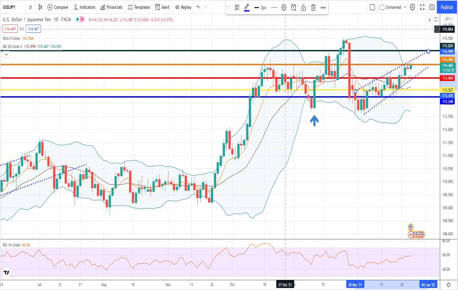 - Ανάλυση USD-JPY [Αμερικανικού δολαρίου έναντι Ιαπωνικού Γεν] για σήμερα 27-12-2021: