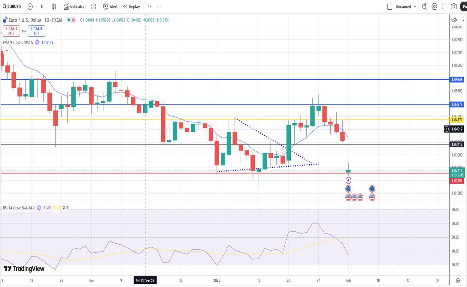 • Ανάλυση ισοτιμίας EUR/USD [ευρώ έναντι αμερικανικού δολαρίου] για σήμερα 03/02/2025