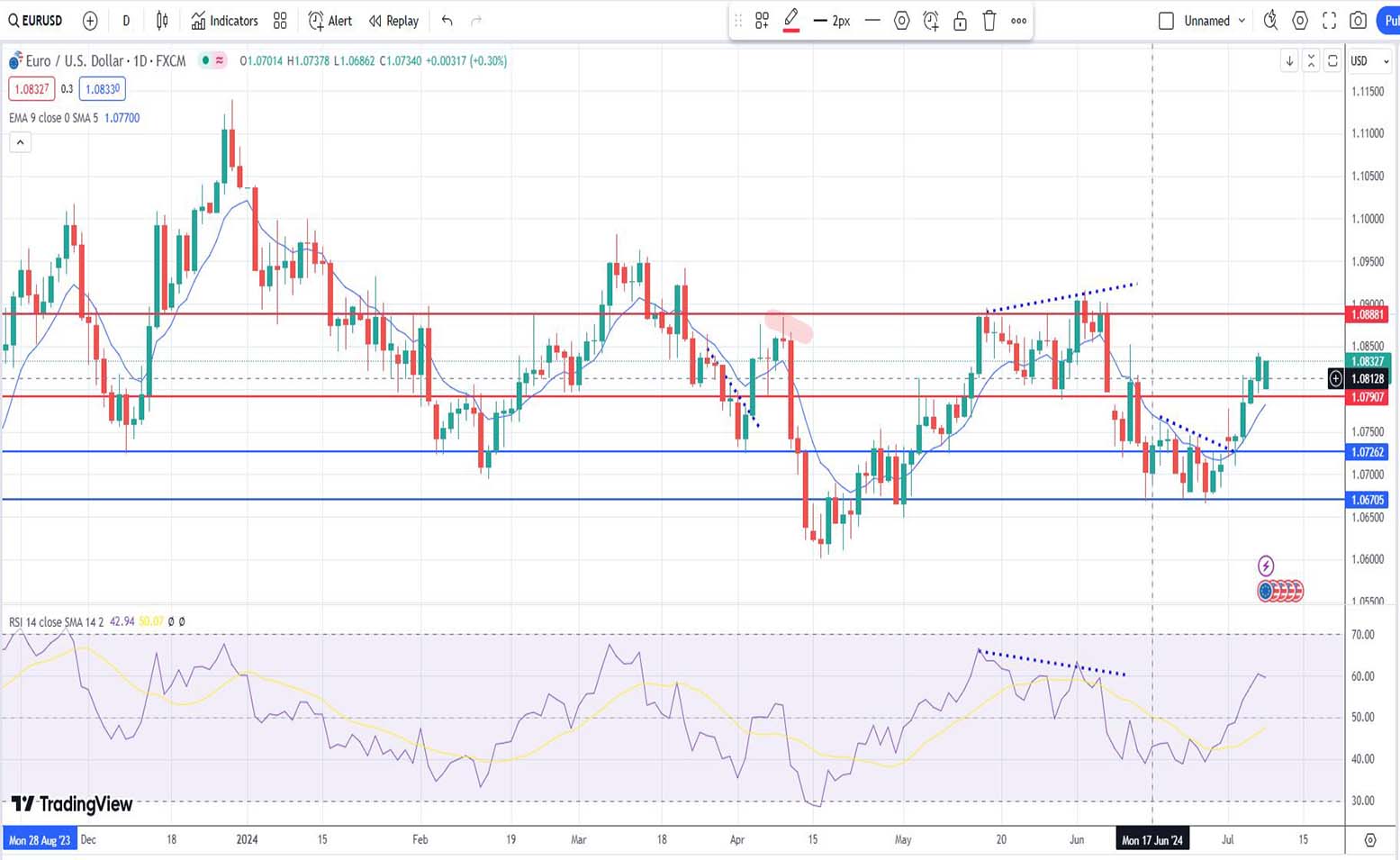 Στην ανάλυση μας για την πορεία της ισοτιμίας EUR/USD με ημερομηνία αναφοράς την 1η Ιουλίου 2024, είχαμε αναφέρει ότι: