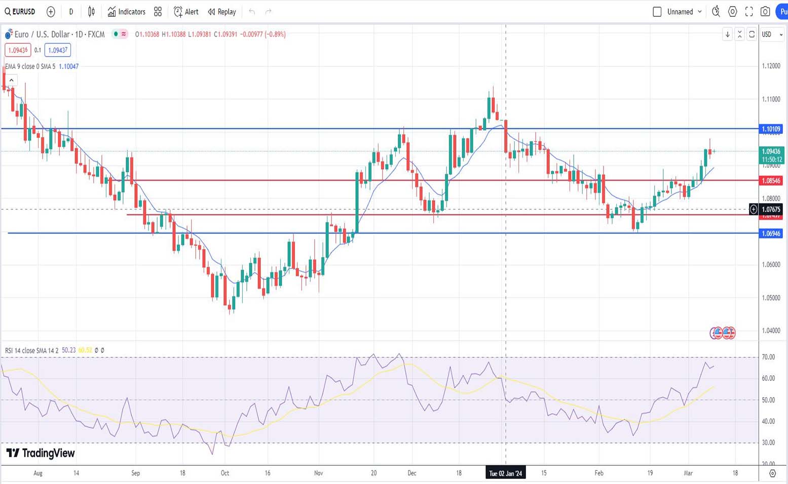 - Ανάλυση ισοτιμίας EUR/USD [ευρώ έναντι αμερικανικού δολαρίου] για σήμερα 11/03/2024: