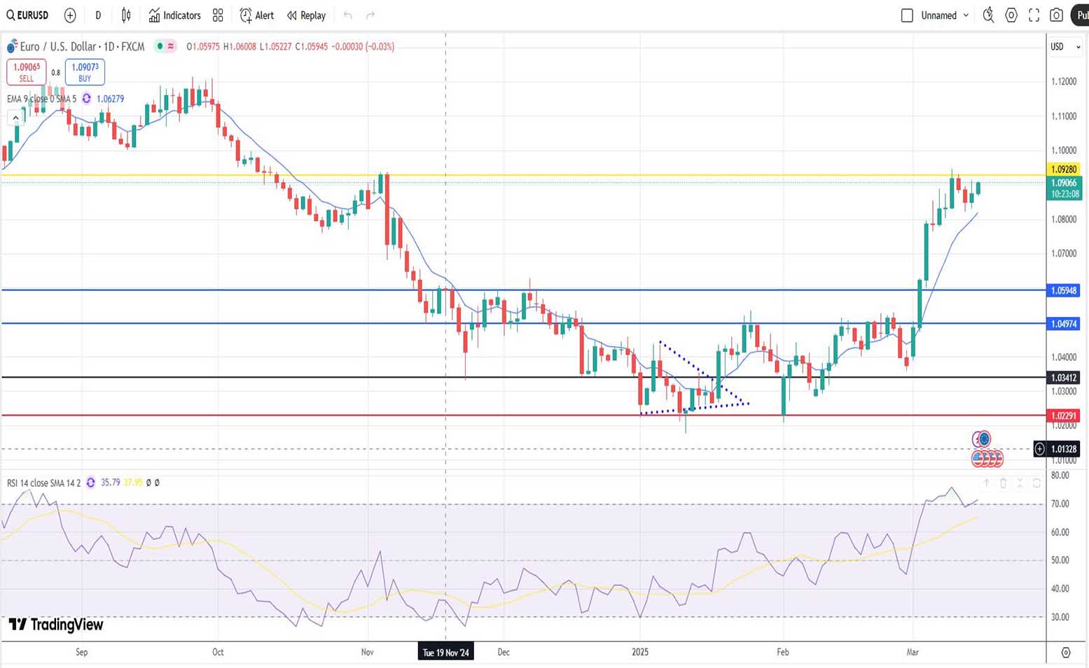 - Ανάλυση ισοτιμίας EUR/USD [ευρώ έναντι αμερικανικού δολαρίου] για σήμερα 17/03/2025