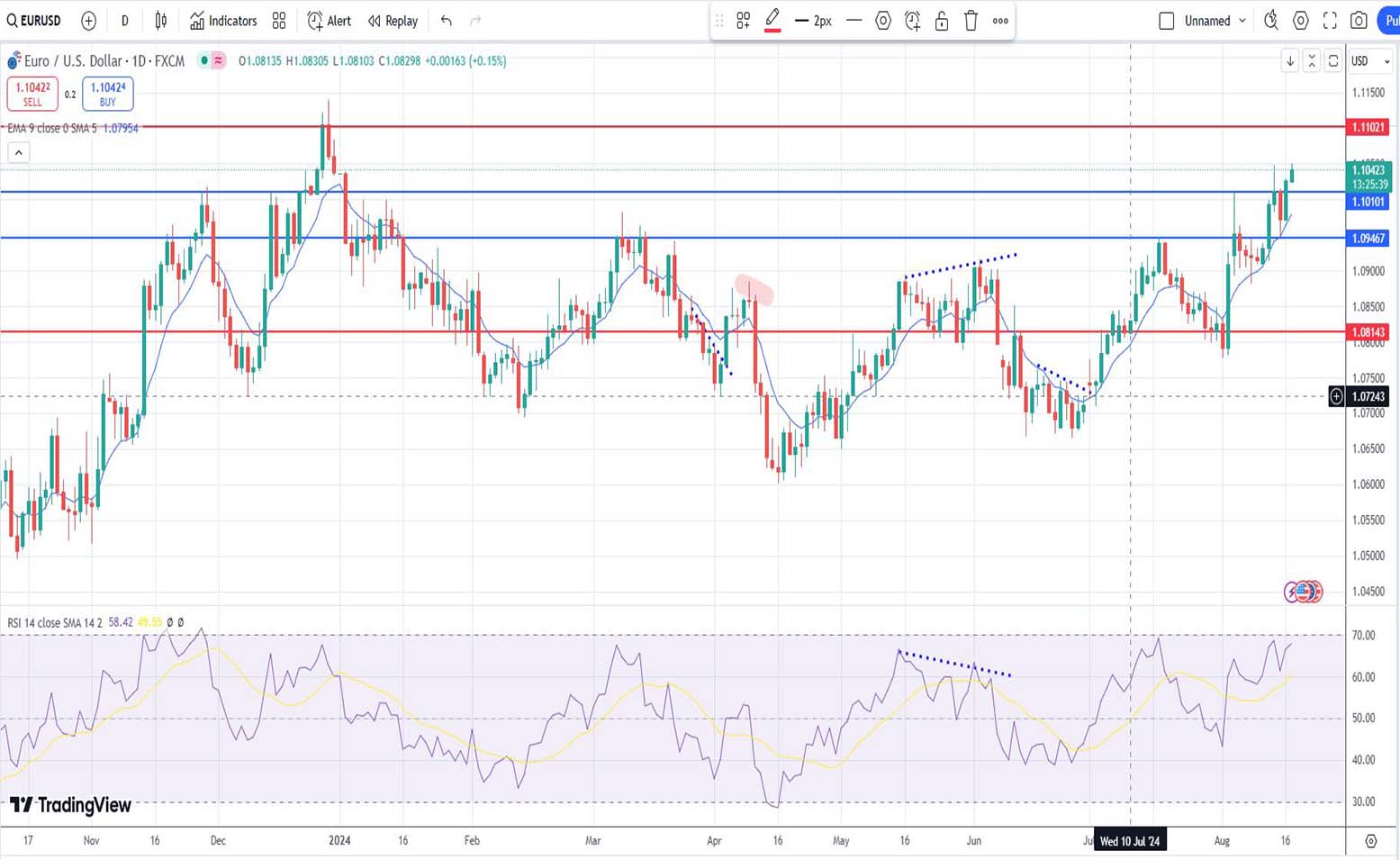 - Ανάλυση ισοτιμίας EUR/USD [ευρώ έναντι αμερικανικού δολαρίου] για σήμερα 19/08/2024: