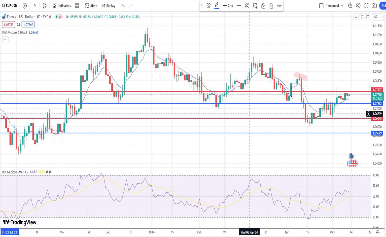 - Ανάλυση ισοτιμίας EUR/USD [ευρώ έναντι αμερικανικού δολαρίου] για σήμερα 13/05/2024:
