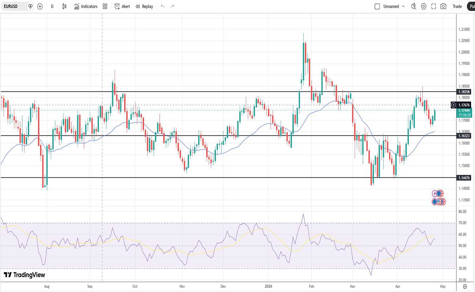 Με ημερομηνία 27-04-2026 προβλέπουμε την βραχυχρόνια πορεία του ευρώ έναντι του αμερικανικού δολαρίου για 1 εβδομάδα