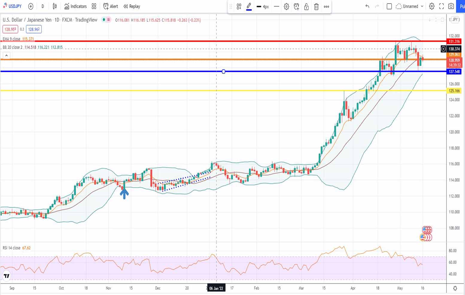 - Ανάλυση USD-JPY [Αμερικανικού δολαρίου έναντι Ιαπωνικού Γεν] για σήμερα 16-05-2022:
