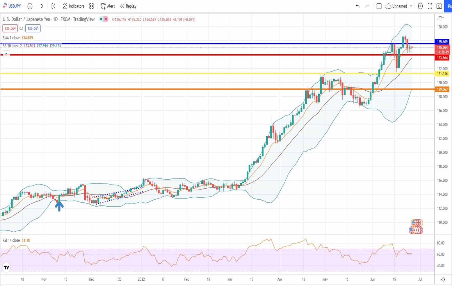 Την περασμένη εβδομάδα με ημερομηνία αναφοράς 20 Ιουνίου 2022, στην τεχνική ανάλυση μας για την πορεία της ισοτιμίας usdjpy γράψαμε τα ακόλουθα: