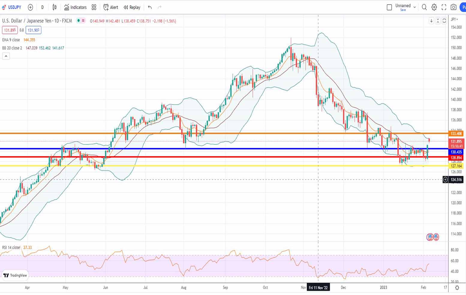 Στην τεχνική ανάλυση της ισοτιμίας δολαρίου έναντι ιαπωνικού γεν ημερομηνία αναφοράς 30 Ιανουαρίου 2023 είχαμε γράψει τα ακόλουθα: