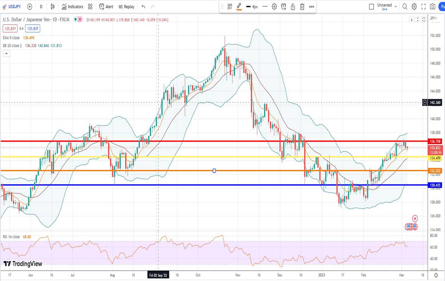 Με ημερομηνία 06/03/2023 προβλέπουμε την βραχυχρόνια πορεία του αμερικανικού δολαρίου έναντι του γεν για 1 εβδομάδα: