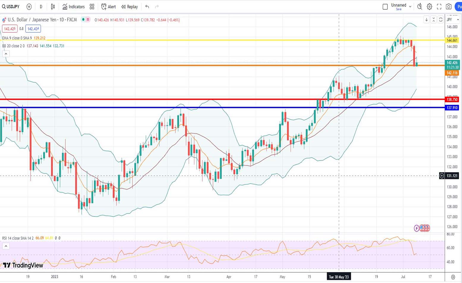 Η ισοτιμία αμερικανικού δολαρίου και γεν σήμερα, την τρέχουσα χρονική στιγμή [10 Ιουλίου 2023] είναι στα επίπεδα των 142,426 μονάδων.