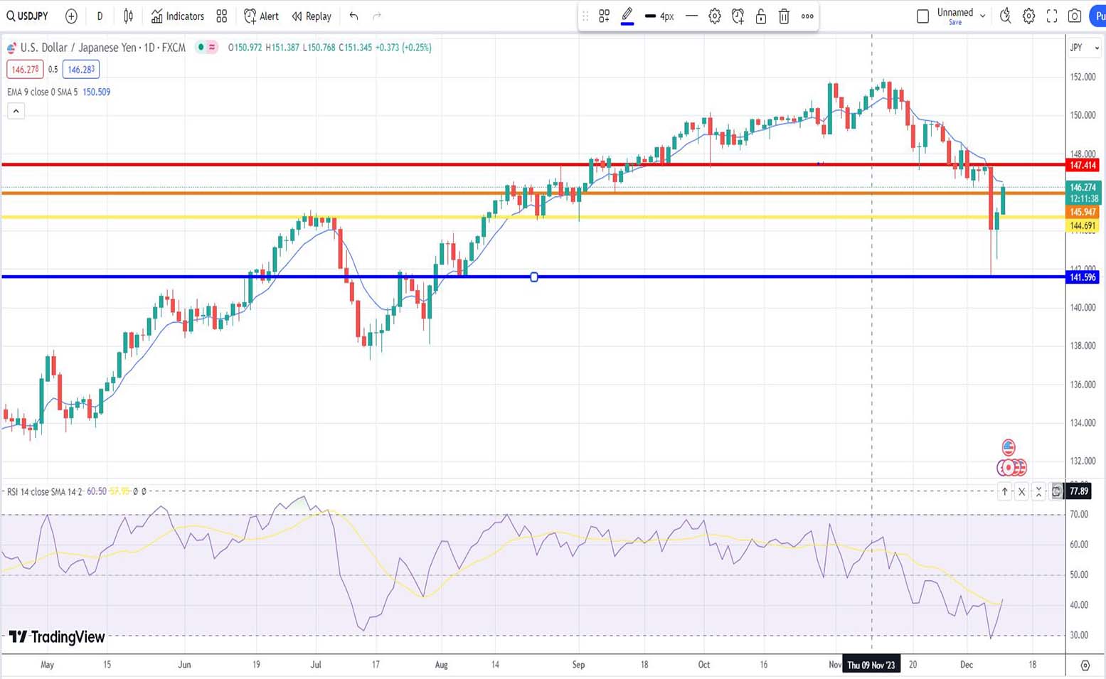 - Ανάλυση USD-JPY [Αμερικανικού δολαρίου έναντι Ιαπωνικού Γεν] για σήμερα 11/12/2023: