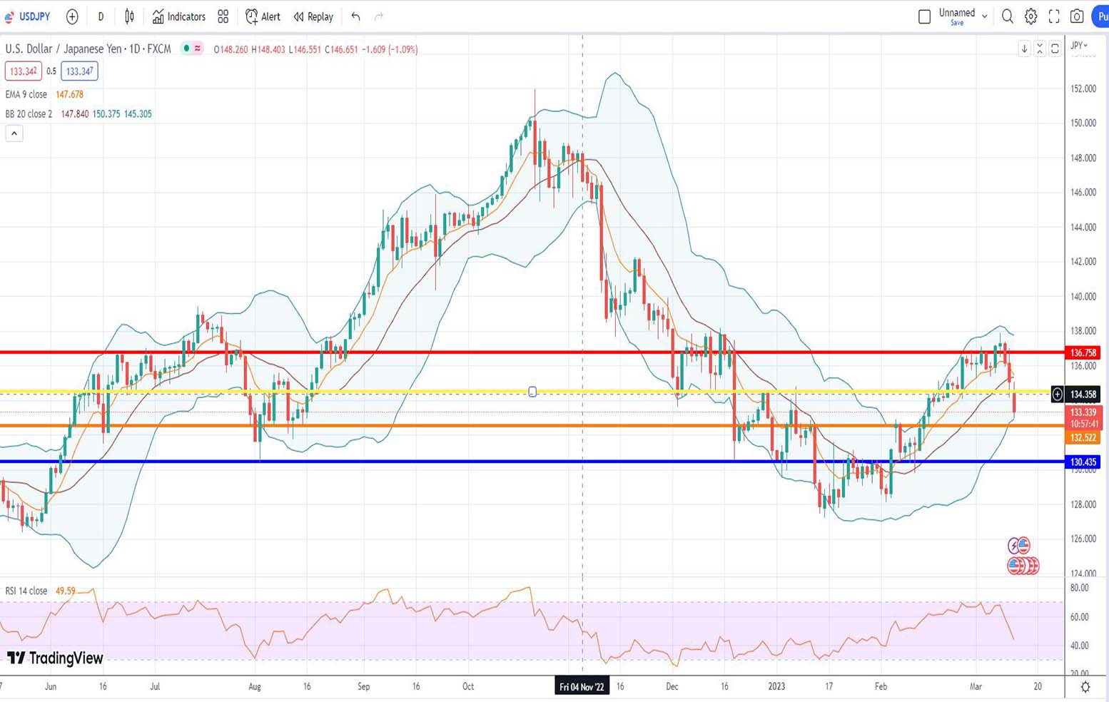 • Ανάλυση USD-JPY [Αμερικανικού δολαρίου έναντι Ιαπωνικού Γεν] για σήμερα 13-03-2023: