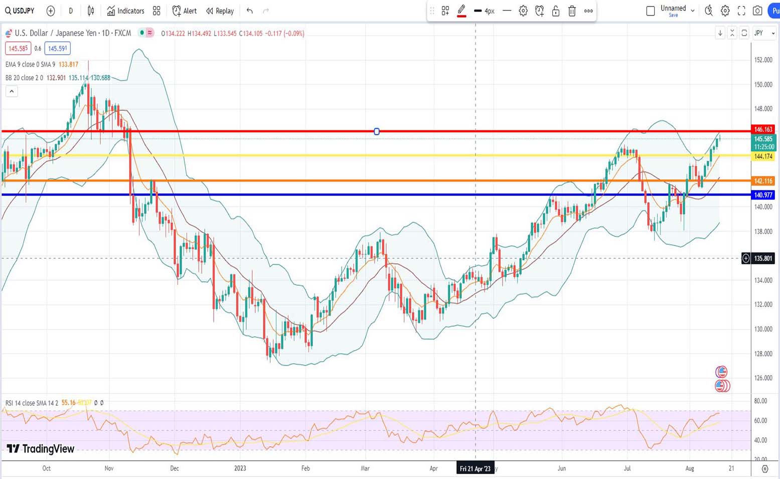 - Ανάλυση USD-JPY [Αμερικανικού δολαρίου έναντι Ιαπωνικού Γεν] για σήμερα 15/08/2023: