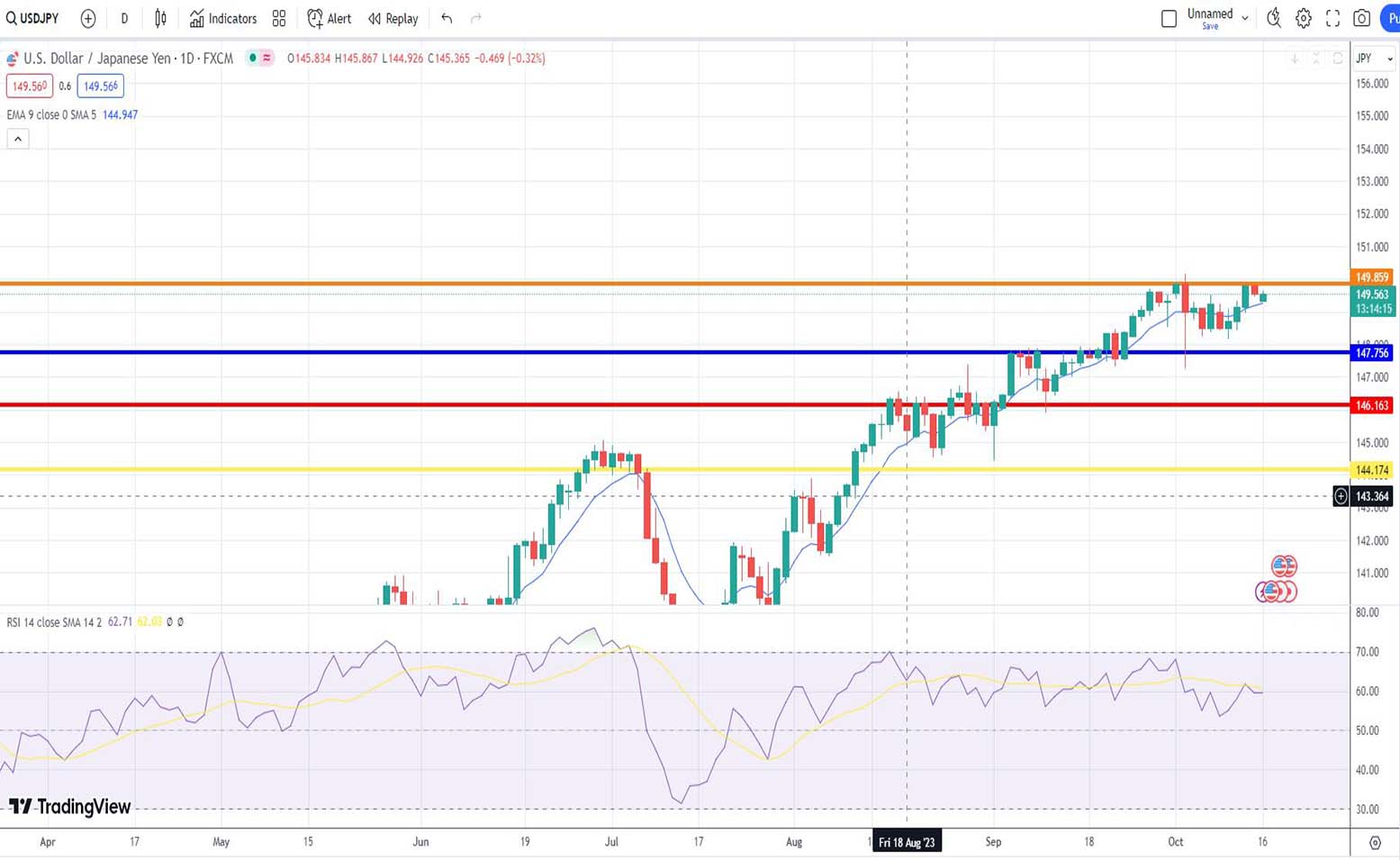 - Ανάλυση USD-JPY [Αμερικανικού δολαρίου έναντι Ιαπωνικού Γεν] για σήμερα 16/10/2023: