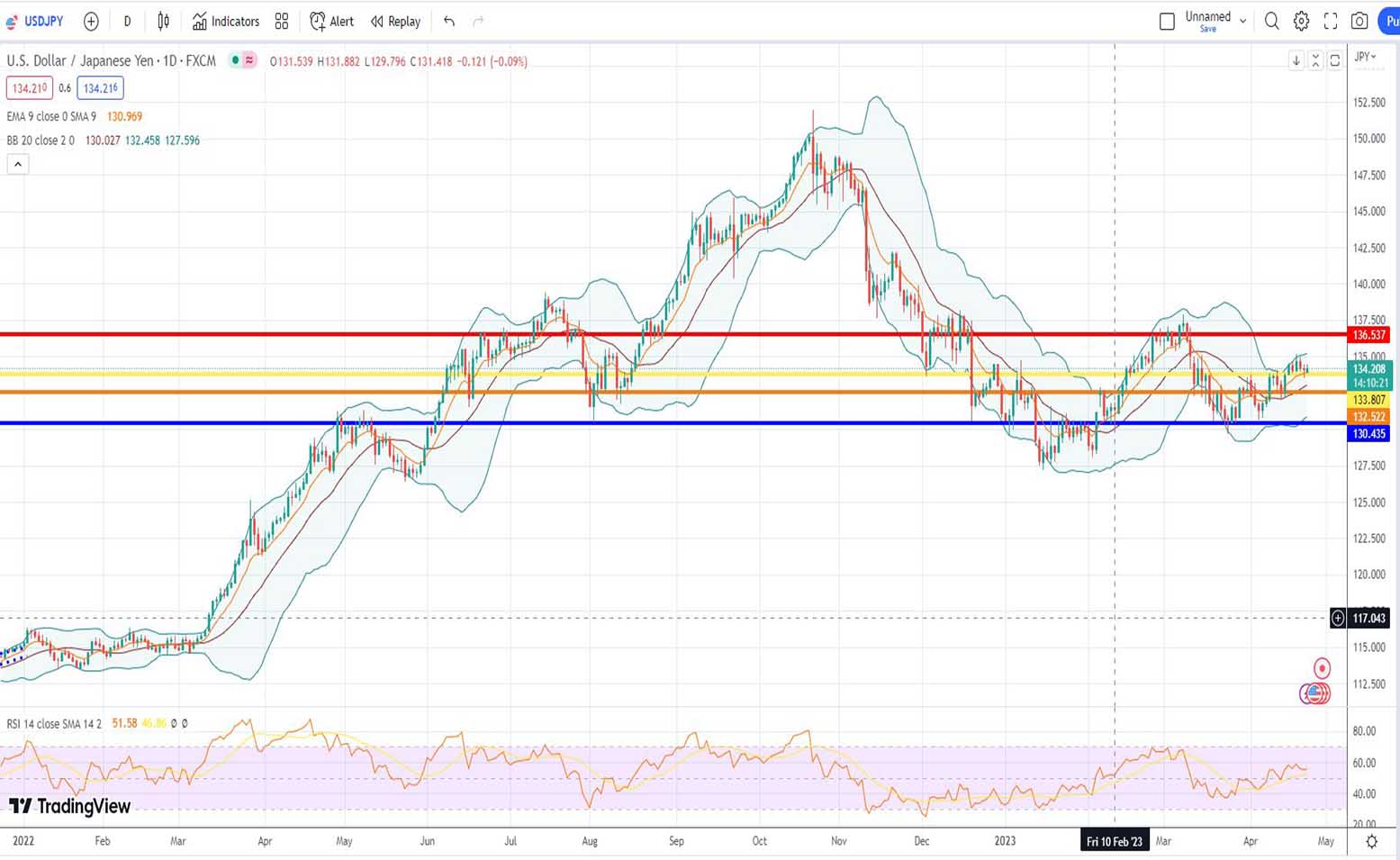 Στην πρόβλεψη μας με βάση την τεχνική ανάλυση για την πορεία της ισοτιμίας δολαρίου έναντι του ιαπωνικού γεν, με ημερομηνία αναφοράς 17 Απριλίου 2023 γράψαμε τα ακόλουθα: