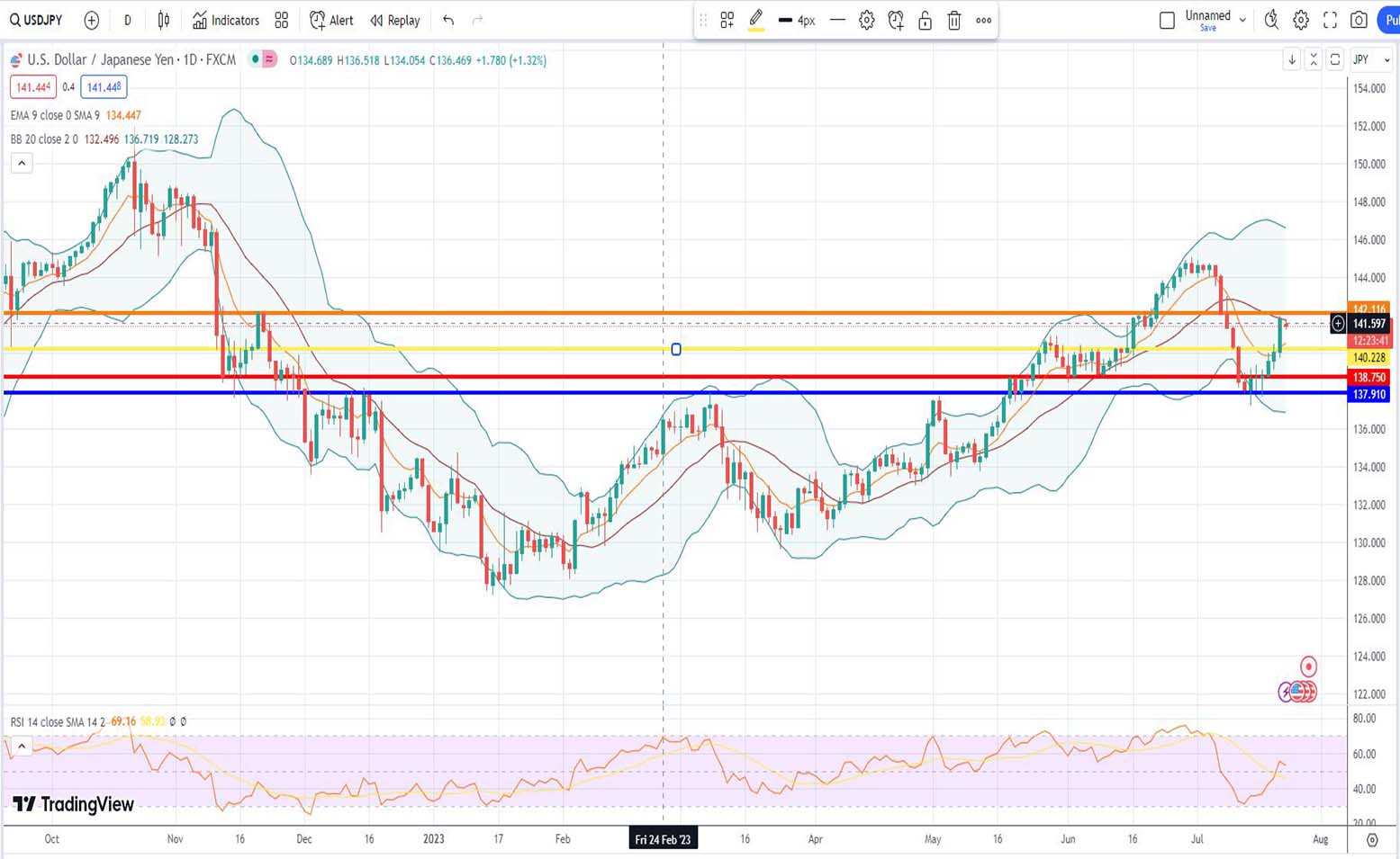 - Ανάλυση USD-JPY [Αμερικανικού δολαρίου έναντι Ιαπωνικού Γεν] για σήμερα 24/07/2023: