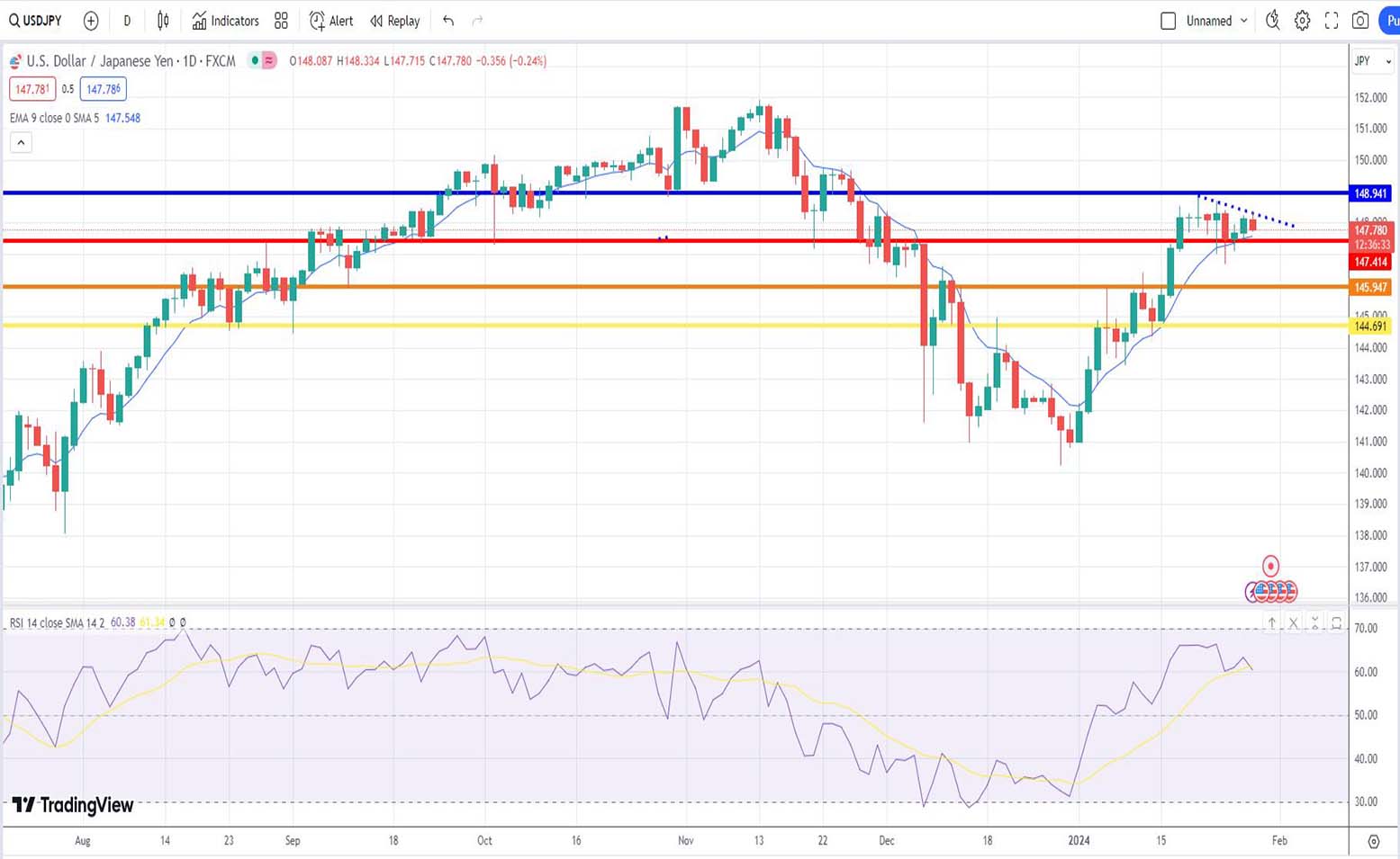 - Ανάλυση USD-JPY [Αμερικανικού δολαρίου έναντι Ιαπωνικού Γεν] για σήμερα 29/01/2024: