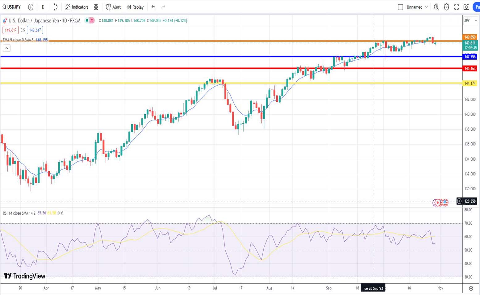 Στην πρόβλεψη μας για την πορεία της ισοτιμίας δολαρίου-γεν, με βάση την τεχνική ανάλυση της 23ης Οκτωβρίου 2023 γράψαμε τα ακόλουθα: