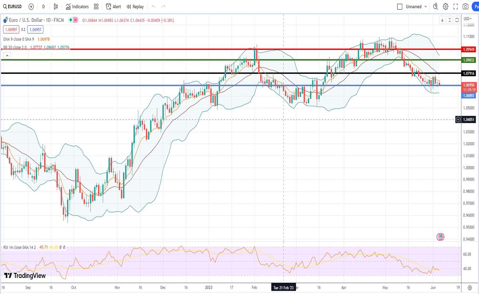 Στην πρόβλεψη μας με βάση την τεχνική ανάλυση για την πορεία της ισοτιμίας ευρώ δολάριο και με ημερομηνία αναφοράς 29 Μαΐου 2023 γράψαμε το ακόλουθα: