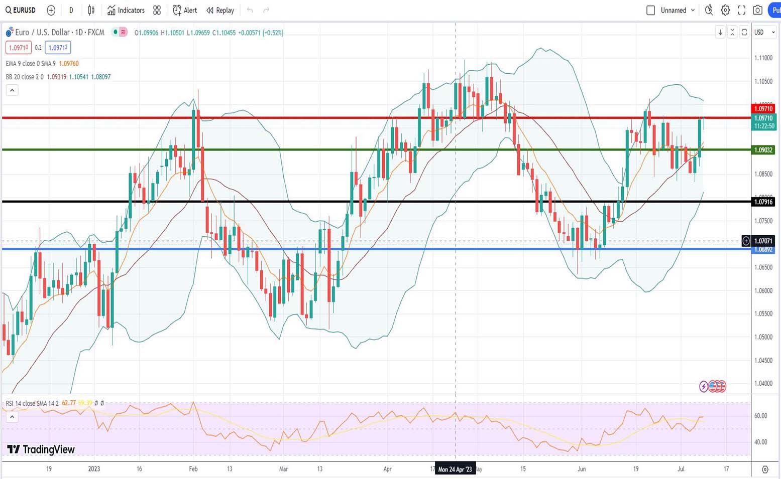 - Ανάλυση ισοτιμίας EUR/USD [ευρώ έναντι αμερικανικού δολαρίου] για σήμερα 10/07/2023:
