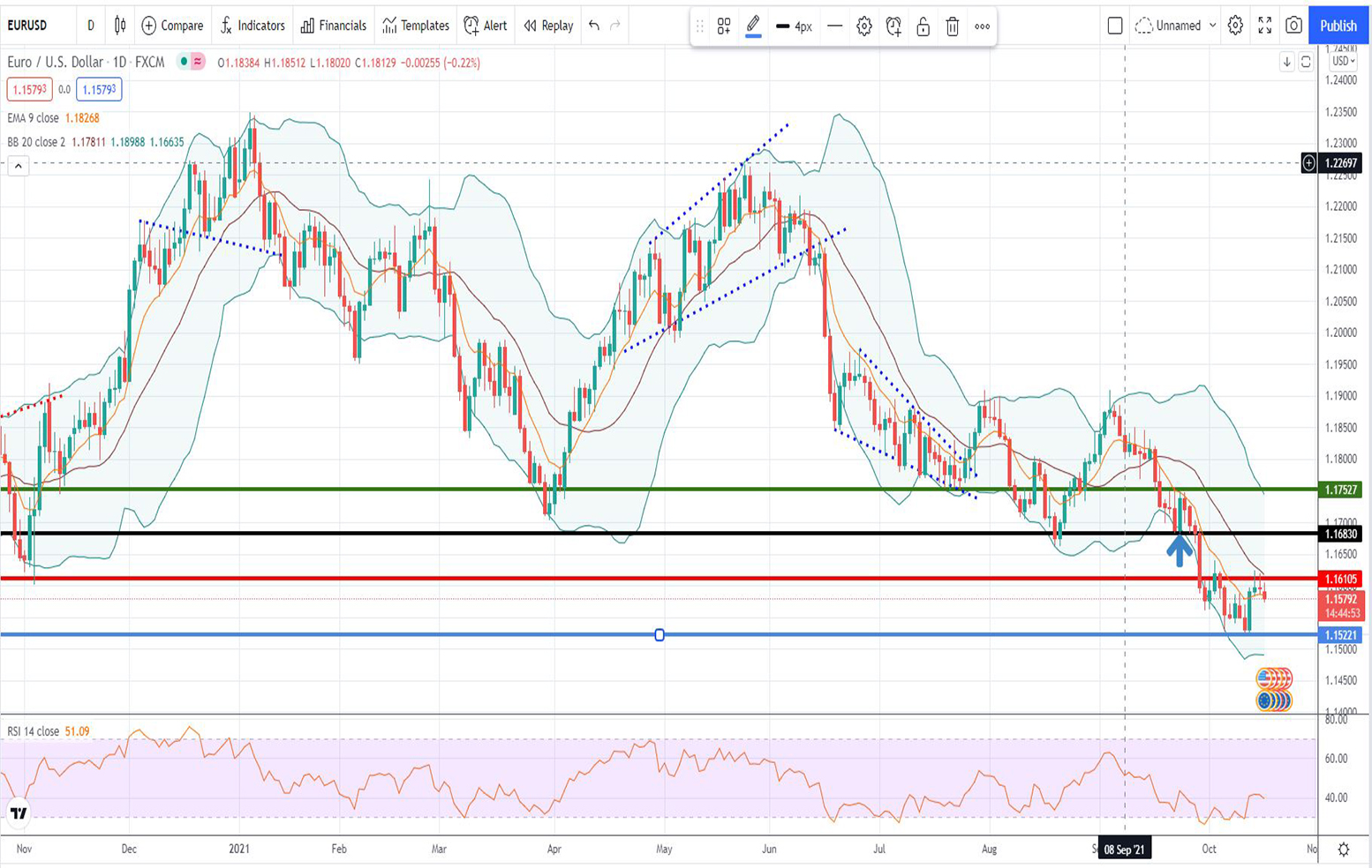 • Ανάλυση ισοτιμίας EUR/USD [ευρώ έναντι αμερικανικού δολαρίου] για σήμερα 18-10-2021: