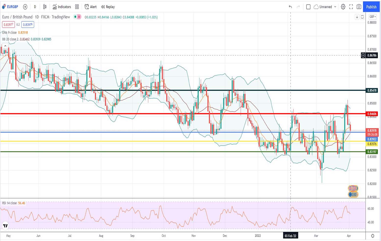 - Τεχνική ανάλυση EUR-GBP [ευρώ έναντι αγγλικής λίρας] για σήμερα 04-04-2022: