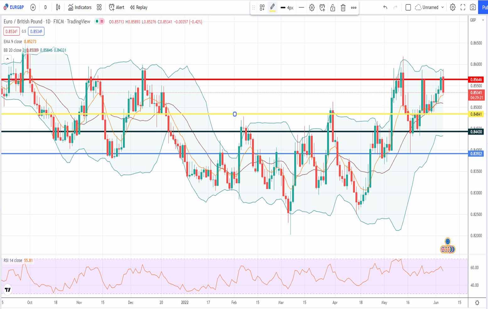 - Τεχνική ανάλυση EUR-GBP [ευρώ έναντι αγγλικής λίρας] για σήμερα 06-06-2022: