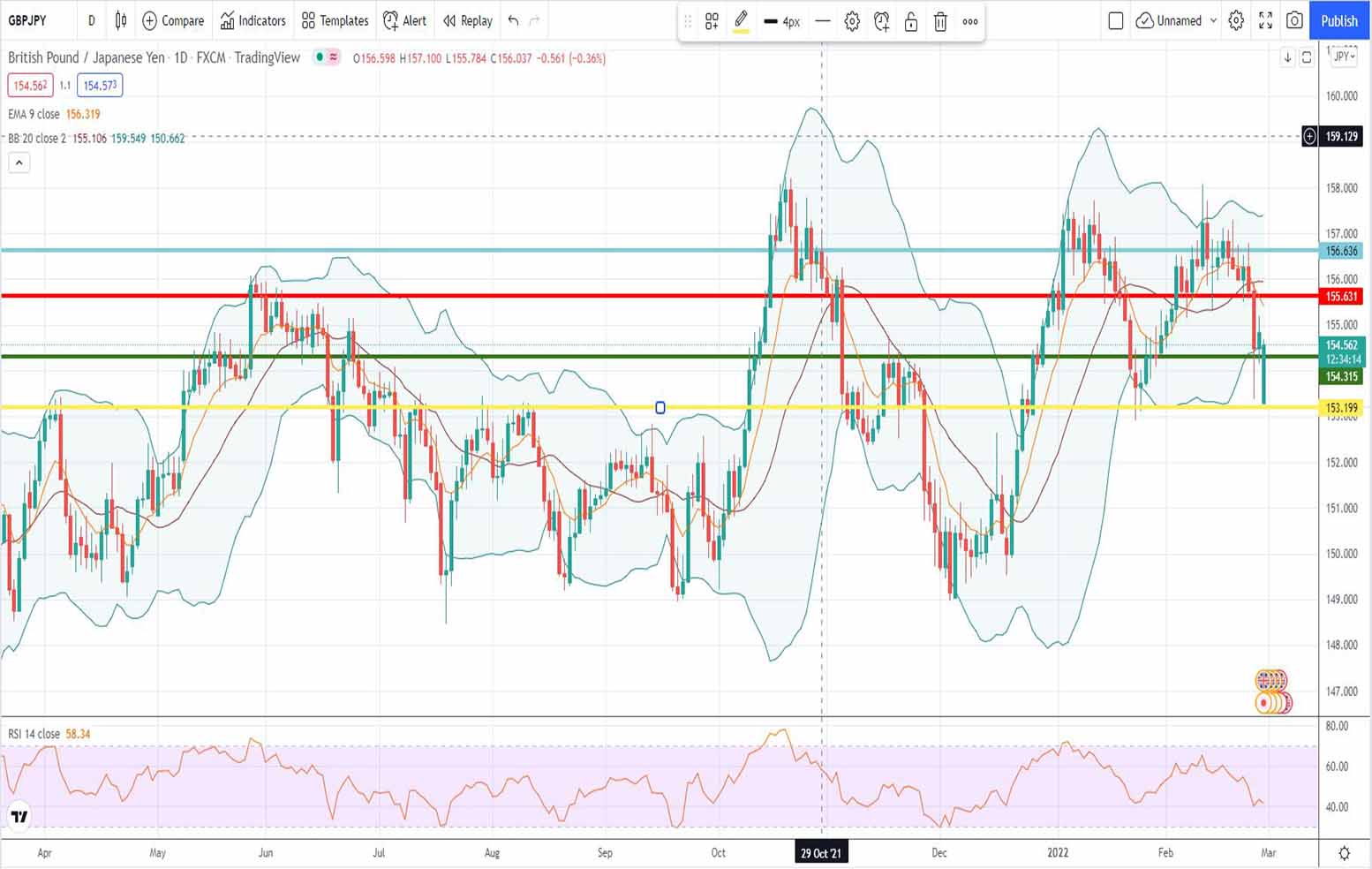 Η ισοτιμία λίρας και ιαπωνικού γεν σήμερα, την τρέχουσα χρονική στιγμή [22 Φεβρουαρίου 2022] είναι στα επίπεδα των 154.652 μονάδων.