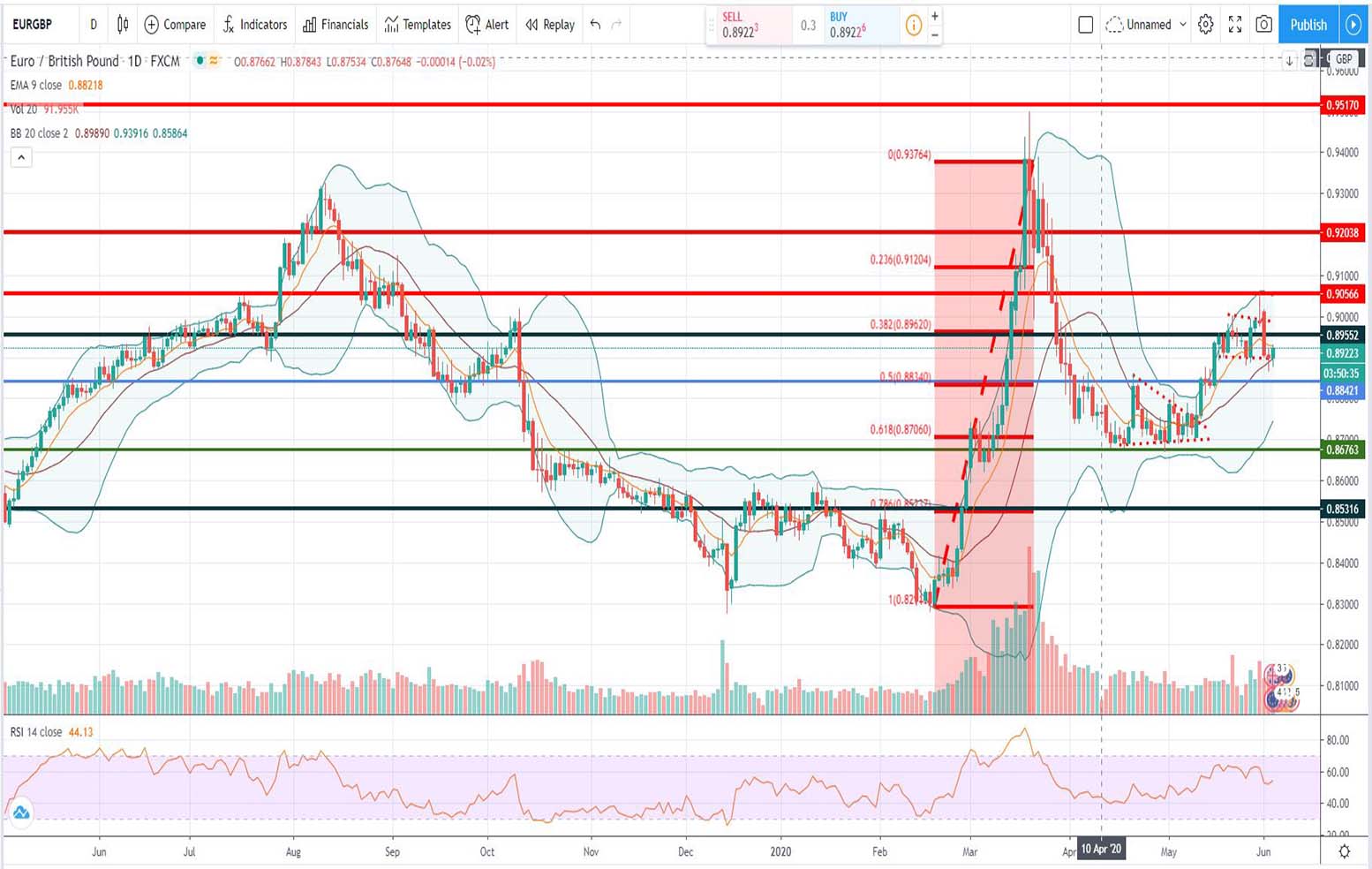 - Τεχνική ανάλυση EUR-GBP [ευρώ έναντι αγγλικής λίρας] για σήμερα 03-06-2020: