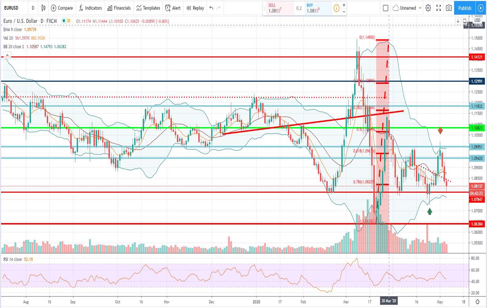 Στην τεχνική ανάλυση της περασμένης εβδομάδος [29/04/2020] για το eur/usd, είχαμε διακρίνει μία νέα τάση: Μια τάση ανοδική να δημιουργείται για το ευρώ σε σχέση με το δολάριο. Η οποία έδινε τιμή στόχο [με βάση τον σχηματισμό] με μεγαλύτερες πιθανότητες το 1,09951 για άλλη μία φορά… Γι αυτό και είχαμε αλλάξει στρατηγική από neutral σε long για το ευρώ-δολάριο.