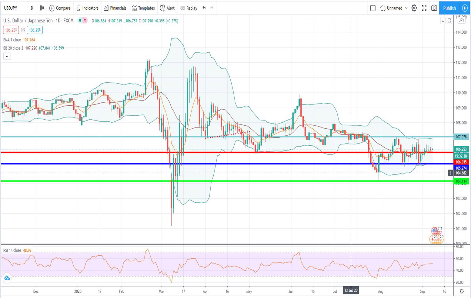 - Τεχνική ανάλυση USD-JPY [Αμερικανικού δολαρίου έναντι Ιαπωνικού Γεν] για σήμερα 08-09-2020: