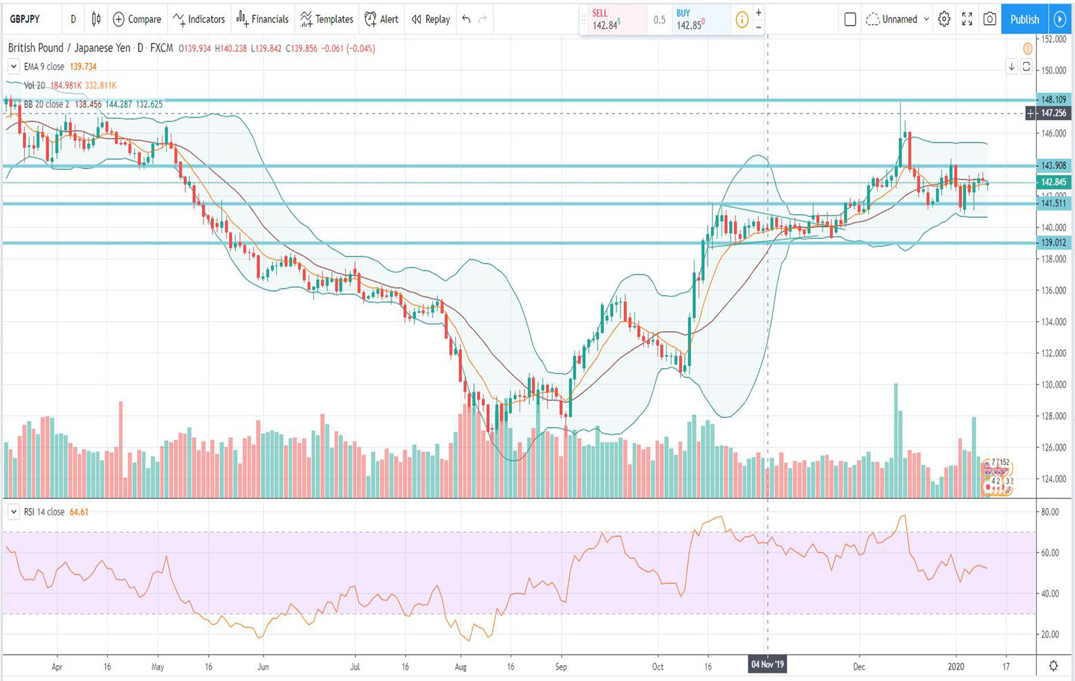 Βάσει Τεχνικής ανάλυσης GBP-JPY 13/01/2020.