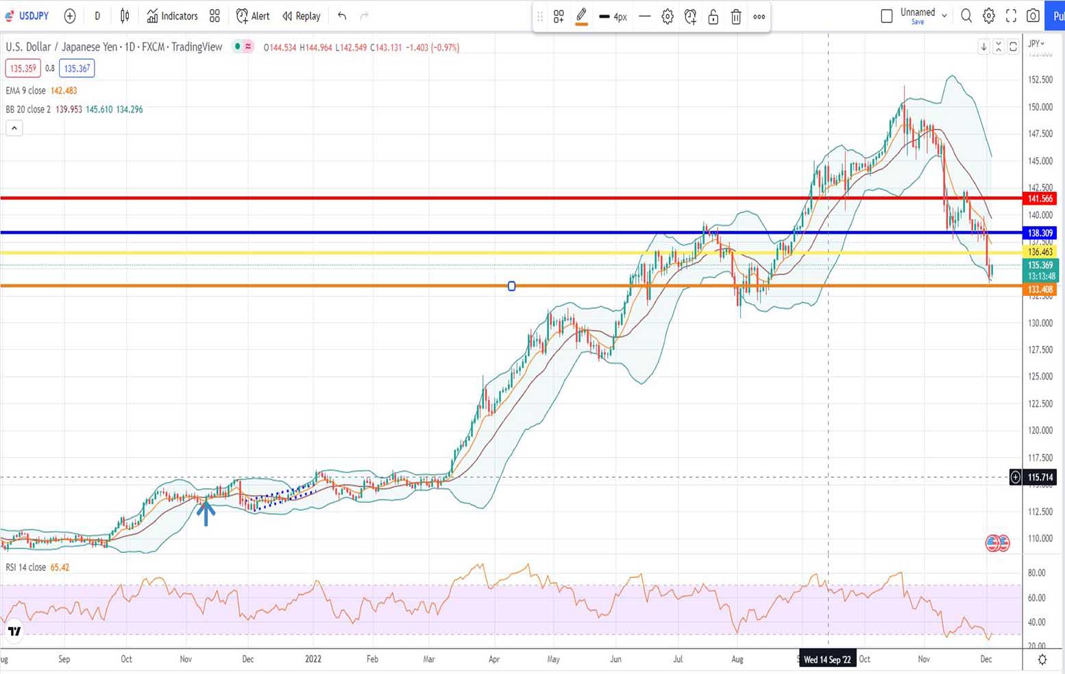 Στην πρόβλεψη μας με βάση την τεχνική ανάλυση για την ισοτιμία δολάριο έναντι του ιαπωνικού γεν και με ημερομηνία αναφοράς 28 Νοεμβρίου 2022 είχαμε γράψει τα ακόλουθα: